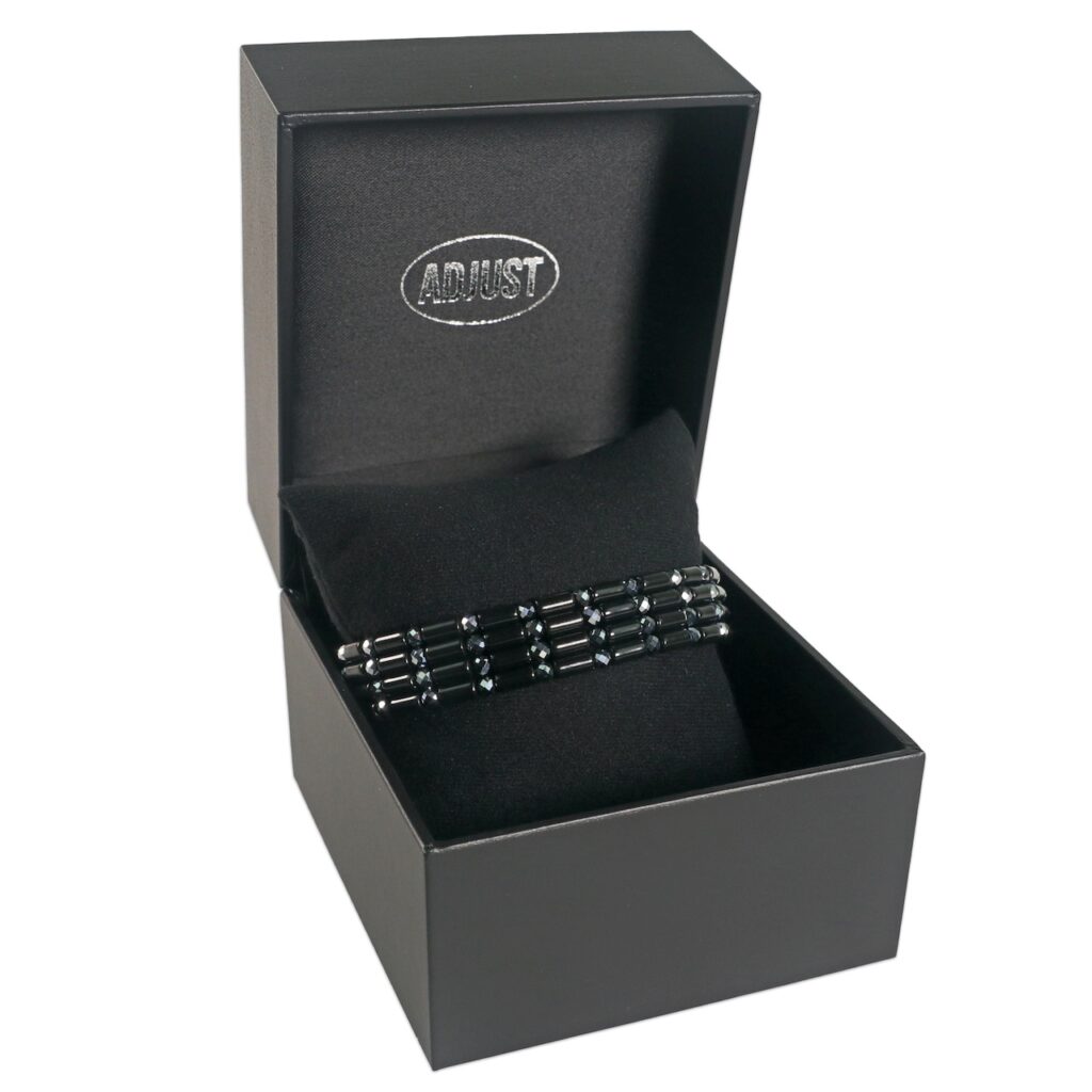 この多機能な磁気アクセサリー「リセットン」は、ヘマタイト、サマコバ磁石、テラ鉱石の3つの素材を組み合わせ、パフォーマンス向上を力強くサポートします。シックなブラックの輝きは、どんなスタイルにも馴染み、洗練された印象を与えます。